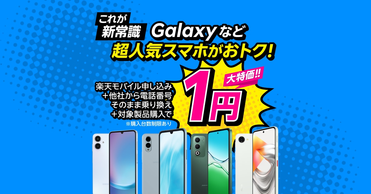 楽天モバイルへの申込みと同時に製品購入することで、それが1円となります。